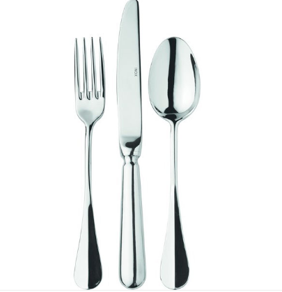 La posateria disponibile è la seguente: Cucchiaio Tavola, Forchetta Tavola, Coltello Tavola.